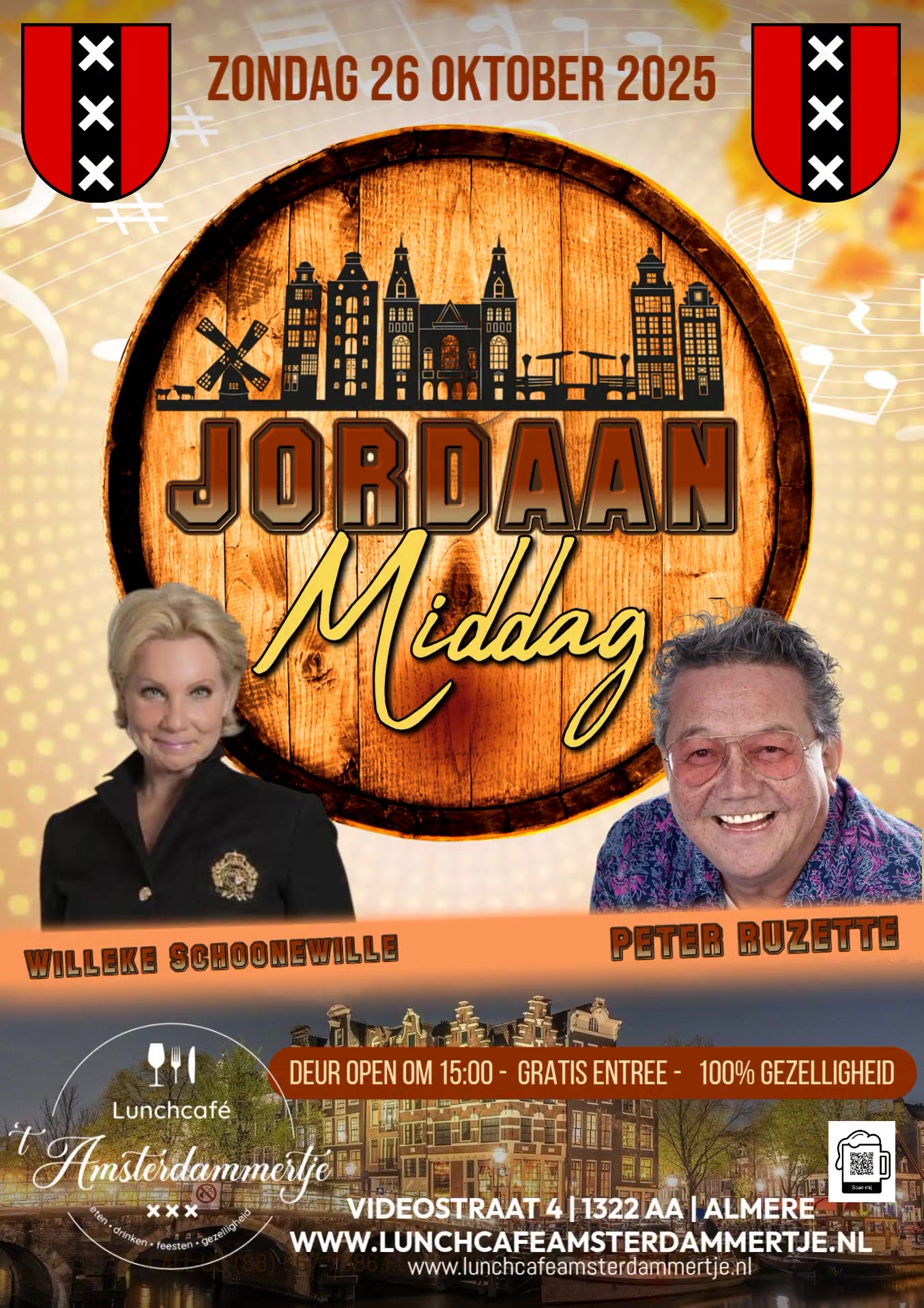 Willeke Schoonewille & Peter Ruzette nemen je mee naar de Jordaan. Alle heerlijke meezingers uit het Amsterdamse hart brengen zij tot gehore. Dit duo staat garant voor een gezellige zondagmiddag!