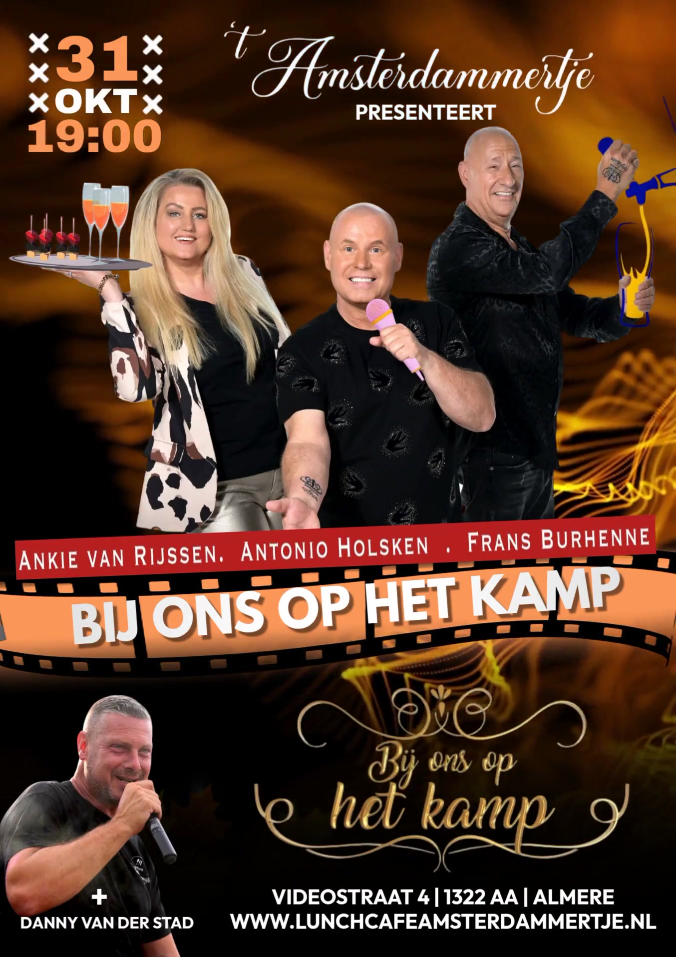 Met je woonwagen naar ’t Amsterdammertje! Deze 3 Toppers die bekend zijn uit de serie “Bij ons op het kamp” komen een feestje bouwen. Frans Burhene staat achter de bar, Antonio Holsken zingt zijn gezellige feestnummers en Ankie van Rijssen gaat langs met haar shotjes. Danny van der Stad warmt de boel lekker op zodat het feest daarna kan beginnen!